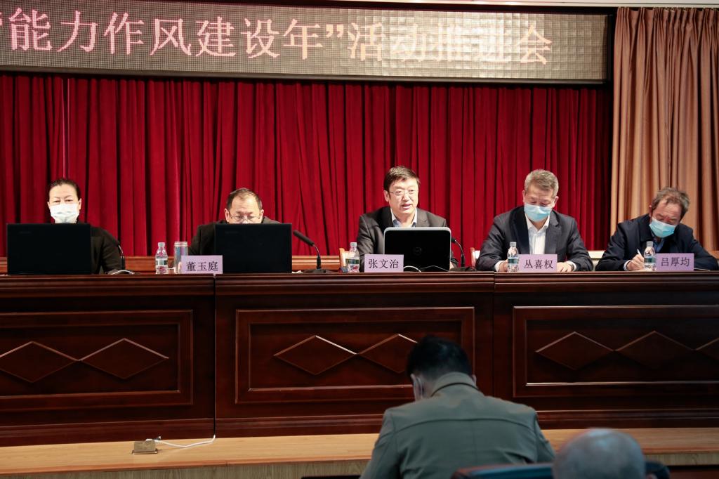 5月5日下午,我校采取線上線下相結合的方式召開“能力作風建設年”活動推進會議。校領導、全校副科級以上干部參加會議。會議由校長、校黨委副書記、學校能力作風建設領導小組組長董玉庭主持。