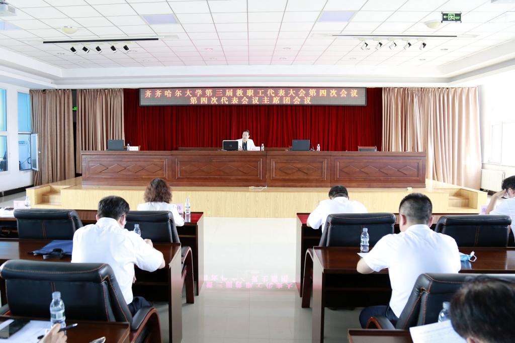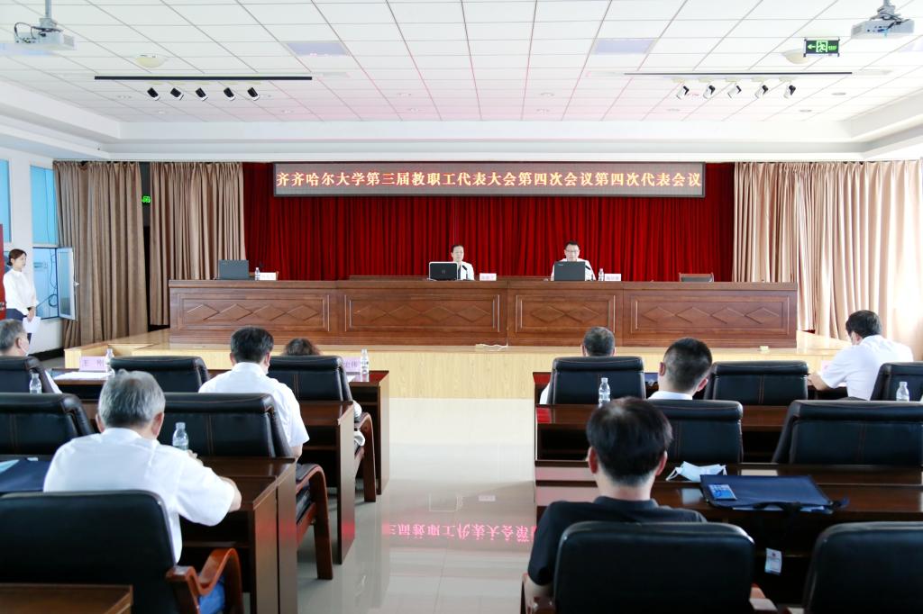 7月1日上午,齊齊哈爾大學第三屆教職工代表大會第四次會議第四次代表會議以線上線下相結合的方式召開,主會場設在求實樓五樓會議室。