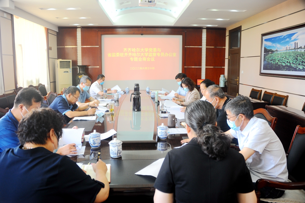 6月30日下午,齊齊哈爾大學黨委與省監(jiān)委駐學校監(jiān)察專員辦公室在學校辦公樓504會議室召開學習貫徹習近平總書記重要講話重要指示批示精神和重要文章有關(guān)工作專題會商會議。學校黨委書記陳桂芝主持專項會商會議,學校黨委常委參加會議,副校長李奇楠和相關(guān)職能部門負責人列席會議。
