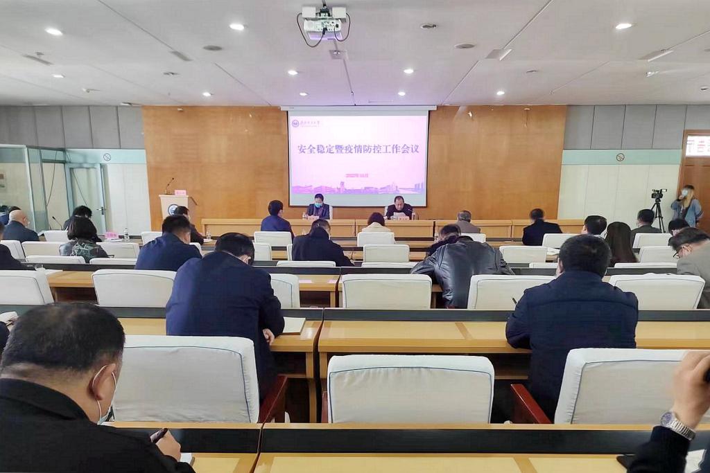 10月14日上午,學校以線上線下相結合的方式召開安全穩定暨疫情防控工作會議,主會場設在守正樓七樓學術報告廳。
