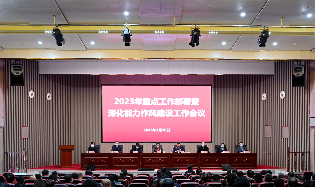 3月16日下午,學校2023年重點工作部署暨深化能力作風建設工作會議在日新大廈四樓報告廳召開。校黨委書記陳桂芝,校長、黨委副書記董玉庭以及學校領導班子成員出席會議,全校副處級以上干部參加會議。會議由陳桂芝主持。