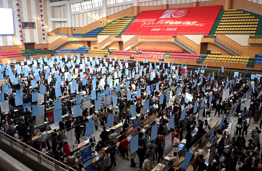 4月1日,齊齊哈爾大學2023屆畢業生大型供需見面洽談會暨黑龍江省2023屆高校畢業生春季校園招聘系列活動齊齊哈爾大學分會場在西區體育館舉辦。