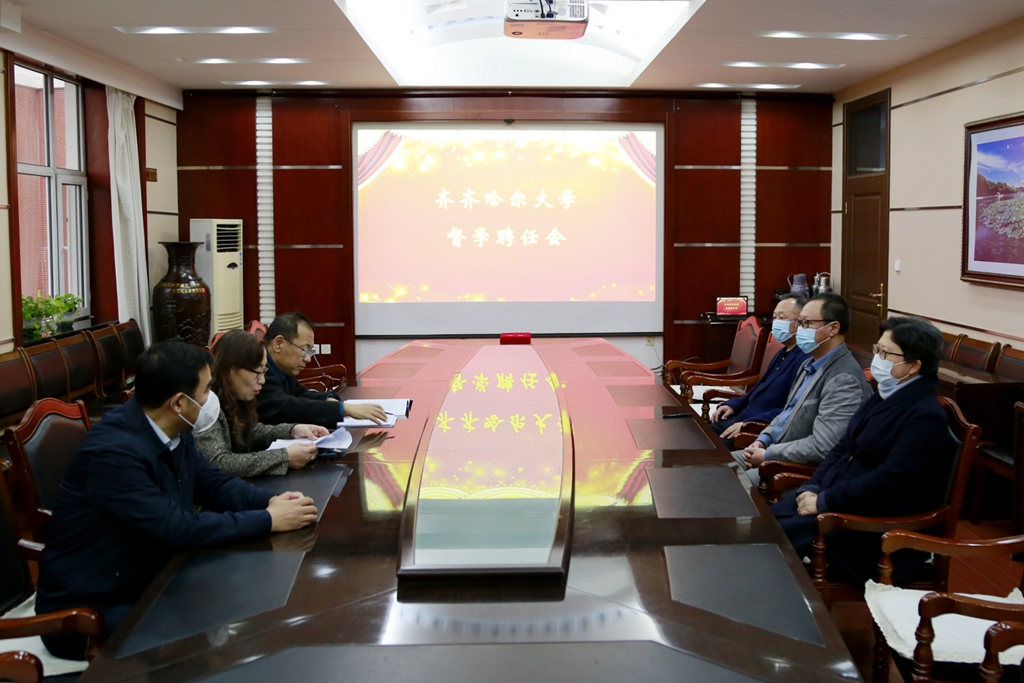 4月28日下午,齊齊哈爾大學督學聘任會在辦公樓504會議室召開。校長董玉庭出席會議并講話,教育督導室(教學質量監控與評估中心)主任李莉主持會議。