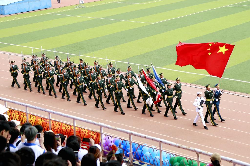 伴隨著雄壯的運動員進行曲,包括前導隊、裁判員隊伍、機關(guān)及各學院代表隊在內(nèi)的26個檢閱隊伍依次走過主席臺,接受大會檢閱。檢閱人員服裝整齊,精神飽滿,口號響亮,展現(xiàn)了我校師生良好的精神風貌。