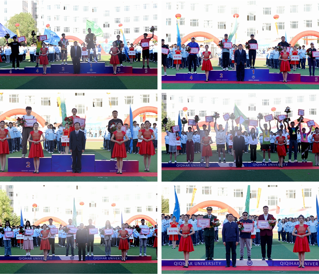 在本屆運動會上,研究生部、教師教育學院、經濟與管理學院、材料科學與工程學院、通信與電子工程學院、計算機與控制工程學院榮獲學生組團體總分前六名;機關、后勤管理處、化學與化學工程學院、材料科學與工程學院、公共外語教研部、食品與生物工程學院獲教工組團體總分前六名;教師教育學院、計算機與控制工程學院、機電工程學院分別獲得學生團體操比賽一、二、三等獎;研究生部盧思吉等10名同學榮獲“十佳運動員”稱號;教師教育學院、音樂與舞蹈學院、經濟與管理學院、美術與藝術設計學院、馬克思主義學院、計算機與控制工程學院、生命科學與農林學院、文學與歷史文化學院(新聞傳播學院)等8個單位榮獲“體育道德風尚獎”;體育學院、理學院、齊齊哈爾大學國旗護衛隊榮獲“特殊貢獻獎”;研究生部運動訓練領域2021級盧思吉同學打破了塵封四十年之久的女子3000米校紀錄。