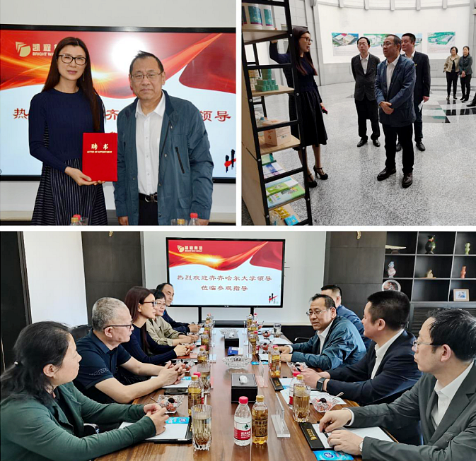 董玉庭一行第二站走訪了哈爾濱兒童制藥廠有限公司,我校87級染整工程專業優秀校友鄭微微任公司董事長。座談交流會上,董玉庭向鄭微微校友頒發了齊齊哈爾大學創新創業導師聘書。鄭微微校友高度評價母校多年來在人才培養、科研創新等方面所取得的成績,表達了對母校的感激之情。董玉庭表示,校友在各自的領域辛勤耕耘,施展才華,創造佳績,不僅為社會各項事業做出了重要貢獻,更為母校贏得了社會聲譽。他還為校友企業提質增效提出了“堅持一種理念、建立一種機制、解決一個矛盾、實現一種推介”的建議,堅持一種理念,即堅持讓科研成果積極對接市場,延長成果轉化鏈,有效提高成果轉化率及其市場價值的理念;建立一種機制,即建立并落實以市場為導向、企業為主體、產學研相結合的科技成果轉化機制;解決一個矛盾,即解決高質量科技供給同市場需求之間的矛盾;實現一種推介,即通過在統一的科研成果大市場實現成功推介,完成科研成果的落地成金。