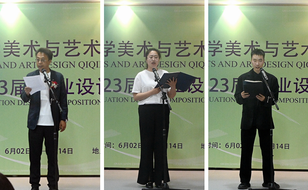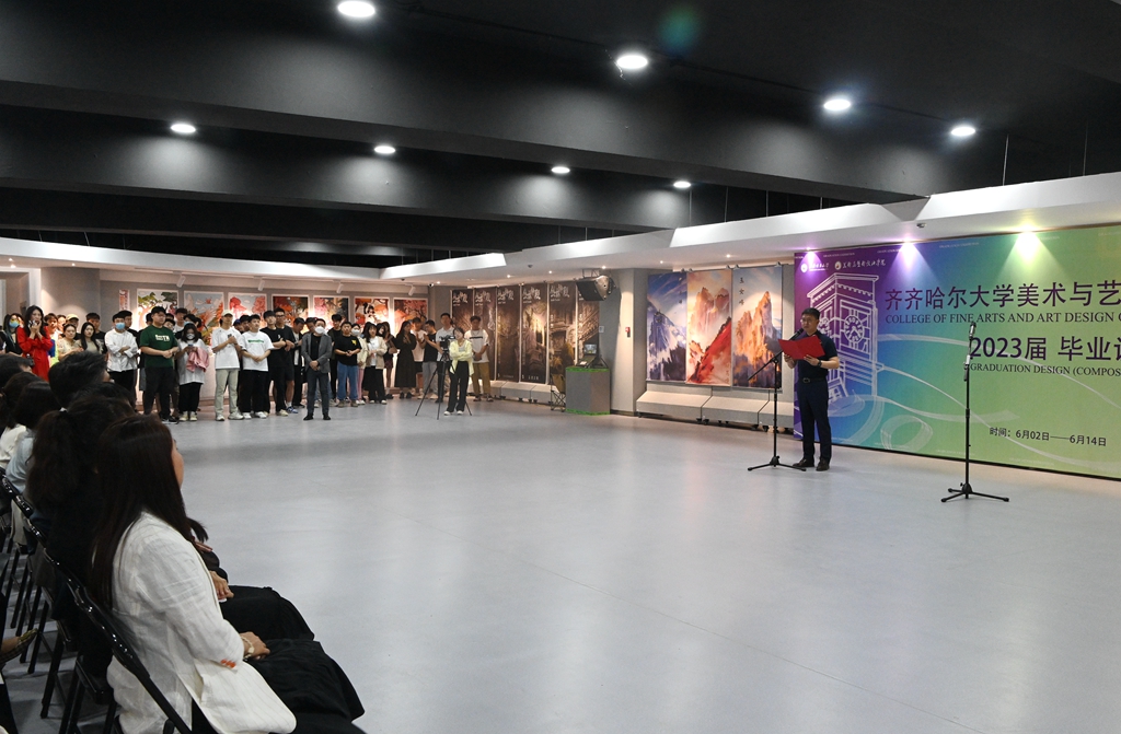 6月2日上午,我校美術與藝術設計學院2023屆畢業設計(創作)系列作品展在齊齊哈爾大學美術館開幕,校黨委副書記齊宏偉、副校長李奇楠,齊齊哈爾市委宣傳部副部長丁云,齊齊哈爾市文聯黨組書記、主席朱虹宇,齊齊哈爾市鐵鋒區、梅里斯區、昂昂溪區和齊齊哈爾高等師范專科學校相關部門負責人應邀出席開幕式,齊齊哈爾市著名設計公司、實習實訓基地代表和我校相關部門負責人,美術與藝術設計學院各系部中心主任及指導教師代表、學生代表參加了開幕式。