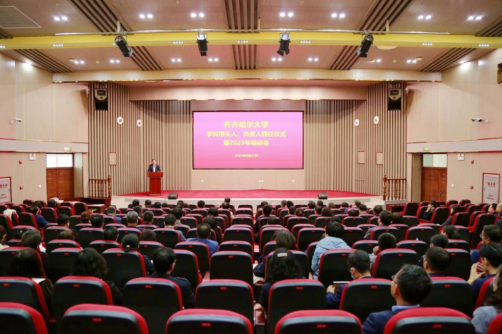 聘任儀式后,學校舉辦了2023年帶頭人、負責人培訓會。培訓會首先由重點建設與發展規劃處張德慶處長介紹了新修訂的《齊齊哈爾大學學科帶頭人及負責人管理辦法》。隨后,張樹軍副校長為全體受聘帶頭人、負責人做了題為《強化使命擔當 引領高水平大學建設高質量發展》的專題輔導講座。