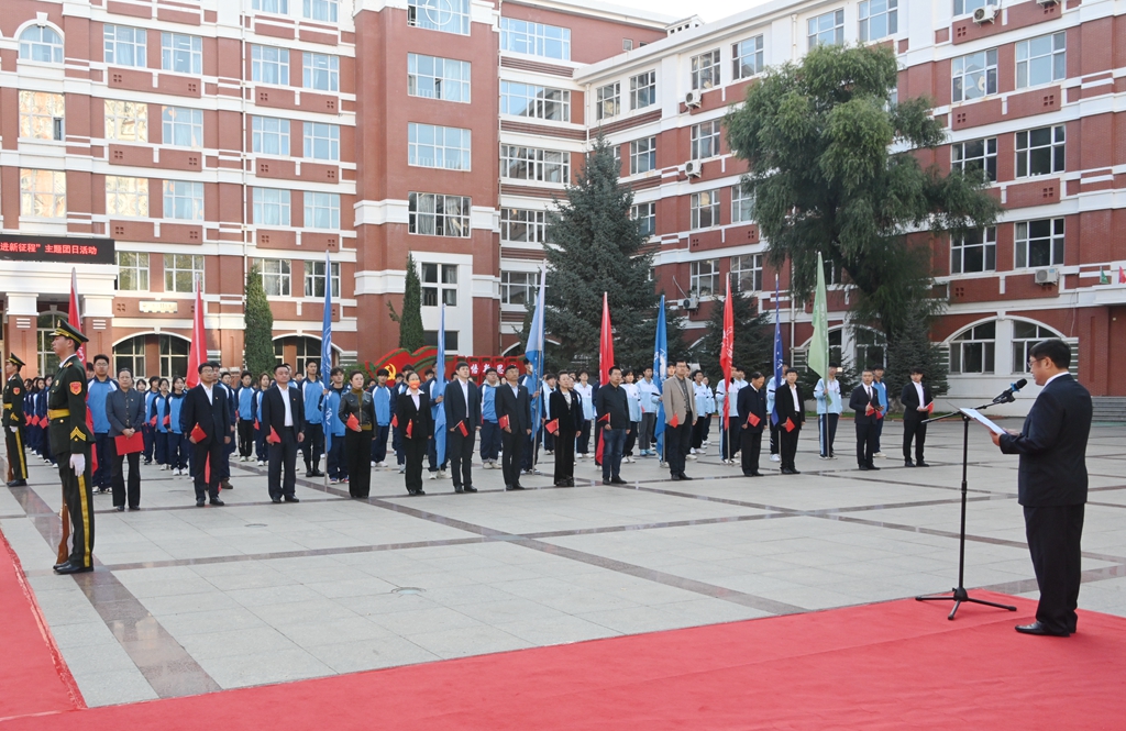 學校黨委書記陳桂芝在講話中指出,我們齊齊哈爾大學為國而建、因時而興、乘勢而上,堅定不移沿著黨中央指引的方向前進,始終與祖國同呼吸,與人民共命運,與龍江心連心,秉持以立德樹人、崇文勵教之初心,踐行為黨育人、為國育才之使命,扎根龍江大地辦大學,走過了“艱苦奮斗、奉獻邊疆”的辦學歷程,譜寫出愛國主義的齊大篇章。全校團員青年要始終牢記習近平總書記的殷切囑托,堅持立心鑄魂,做有理想的新時代齊大人;堅持知責有為,做敢擔當的新時代齊大人;堅持崇德修身,做能吃苦的新時代齊大人;堅持實干篤行,做肯奮斗的新時代齊大人。全校師生員工要堅持以習近平新時代中國特色社會主義思想為指導,全面學習宣傳貫徹習近平總書記視察黑龍江期間重要講話重要指示精神,大力弘揚愛國主義精神,著力服務黑龍江高質量發展可持續振興,全面建設有特色高水平應用型綜合大學,在強國建設民族復興新征程上,凝心聚力跟黨走、踔厲奮發建新功!
