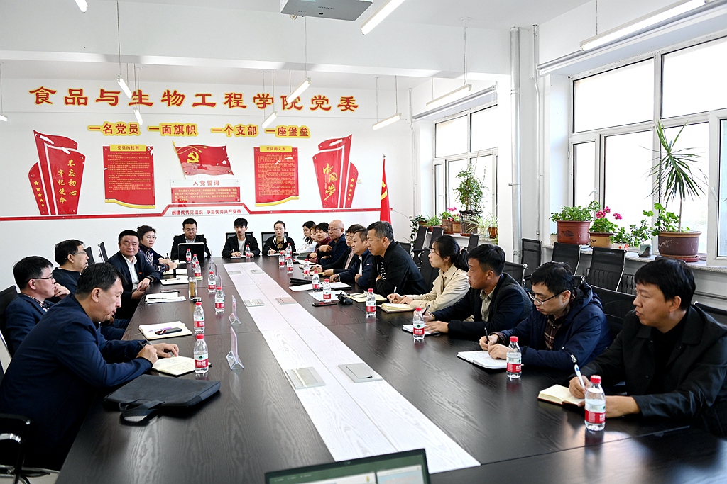 10月11日下午,校長郝文斌在相關部門負責人陪同下,來到食品與生物工程學院調研指導學院建設相關工作,征集學院干部師生對學校建設、改革與發展的意見和建議。