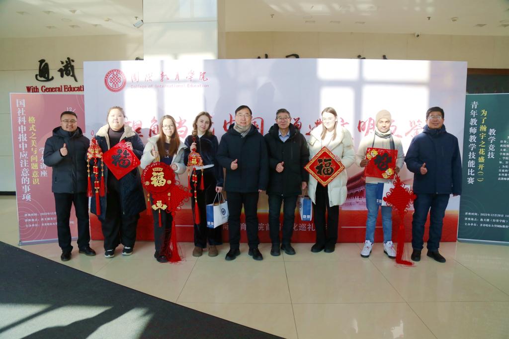 在德潤大廈一樓大廳,郝文斌走進留學(xué)生中間為大家添喜送福,關(guān)切詢問家庭狀況,對留校的國際師生表達了節(jié)日的祝福和深切的問候,并為大家發(fā)放了新春大禮包。同時,他叮囑同學(xué)們合理安排時間,注意假期安全,充分利用在龍江過龍年的寶貴契機,進一步感受中華優(yōu)秀傳統(tǒng)文化的魅力。希望同學(xué)們成為促進中外交流的橋梁紐帶,為中外友好合作交流做出新的貢獻。郝文斌表示,“每逢佳節(jié)倍思親。”龍是中華民族的圖騰,象征著奮進騰飛,吉祥如意。辭舊迎新之際,學(xué)校將更加關(guān)心關(guān)愛在校學(xué)生。祝大家龍行龘龘、前程朤朤、生活??,在新的一年里扎根齊大沃土取得可喜成績。