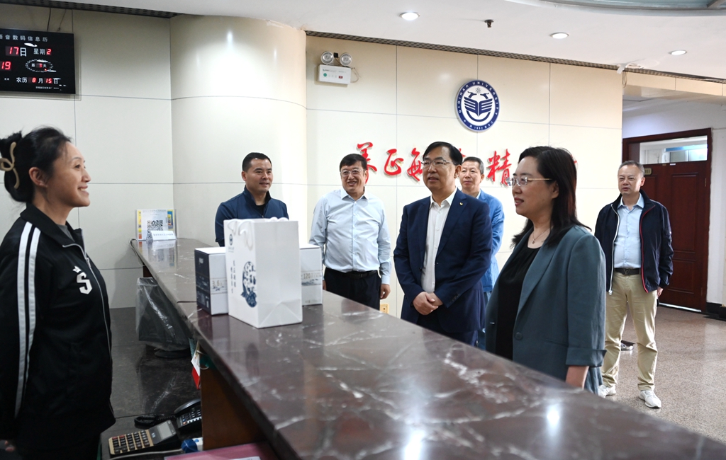 校領導一行先后來到了學校總值班室、辦公樓門衛室、中區大門,校體育館南門,西二區學生食堂、浴池、學生宿舍28號樓,東區東南門、德潤大廈等地,每到一處都詳細了解中秋節假日期間相關崗位的工作和值班情況,對大家的辛勤付出表示感謝,囑咐大家要關注天氣變化,注意保重身體,并代表學校為堅守崗位的職工代表們送去了慰問品,希望大家能一如既往地做好節日期間的保障工作,確保廣大師生度過一個安定祥和的假期。