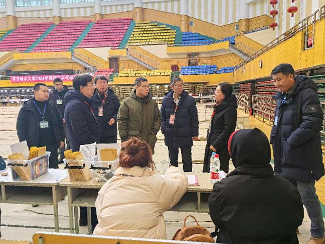 為確保實現平安研考的工作目標,考試期間,校黨委書記丁宏、校長郝文斌與黑龍江省招生考試院巡視員李偉晗深入現場指導,對考場部署、考生安檢、考場監控、手機存放、考生候考等環節進行重點檢查,同時慰問考務工作人員和學生志愿者,并提出相關工作要求。
