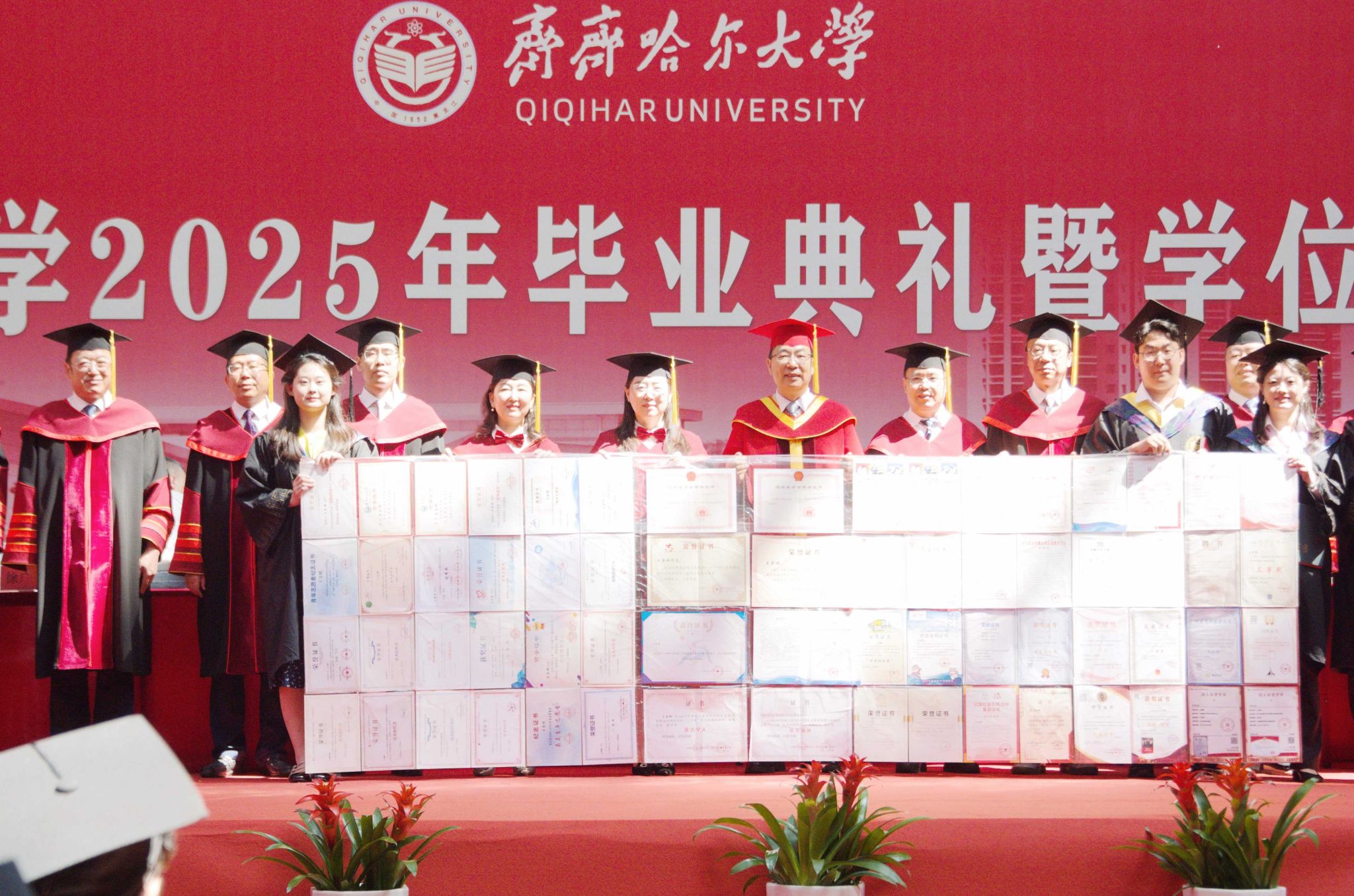 典禮上,副校長、校學位評定委員會副主席范鐵明宣讀學校關(guān)于準予本科生、研究生、留學生畢業(yè)的決定。副校長、校學位評定委員會副主席馬文輝宣讀學校關(guān)于授予本科生、研究生、留學生學位的決定。副校長、校學位評定委員會委員王志剛宣讀學校關(guān)于命名表彰2025屆本科優(yōu)秀畢業(yè)生和研究生優(yōu)秀畢業(yè)生的決定。