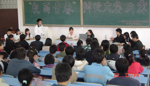 4月26日,中主102教室熱鬧非凡,化工學院組織的一場以“八榮八恥”主題的辯論賽正在這里進行。“八榮八恥”社會主義榮辱觀以走進校園,“堅持理想主義與現實主義對當代大學生哪個更重要”的辯題,使同學們在活動中進一步理解了“八榮八恥”的內涵。