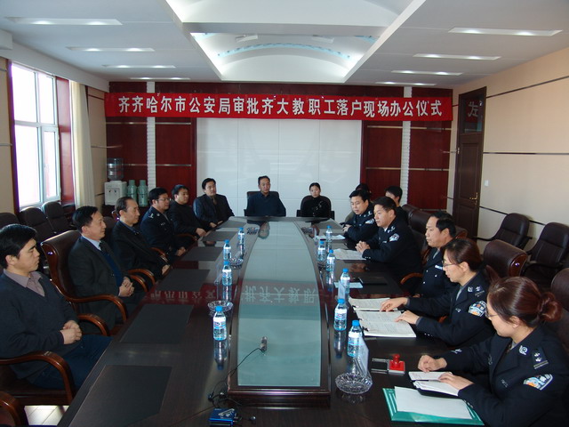 克山師專并入我校后,300多戶涉及800多人的教職工落戶一直是個比較難解決的問題。經我校與市政府的多次協商,本著支持教育特事特辦的原則,在公安局戶政工作人員多次來校進行核對審查的基礎上,今日由局領導帶隊來我校進行現場辦公解決問題。市公安局長孫玉生在現場會上說,齊大是我市唯一的綜合性大學,地方政府應該支持學校的發展建設,教職工落戶的問題力爭在2005年底前解決完畢。