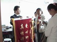 市商業銀行有關領導通過媒體得知此情況后,予以高度重視。工會主席宣莉通過商行網發動全行職工自發捐款,廣大職工積極響應,慷慨解囊,奉獻愛心,全行上下一點一滴的捐款很快就匯成了愛的暖流。6月6日上午,宣莉等一行帶著商業銀行全體員工的愛心將他們自發捐助的7000元錢交到了王露藝手中,勉勵她好好學習,與母親共渡難關,并祝王露藝的母親早日康復。同時,宣莉代表捐助單位填寫了愛心捐助卡。王露藝母女將繡有“愛心助學子 真情譜新篇”的錦旗贈給商行員工,并請宣麗等轉達她們母女的感激之情,決心戰勝困難,努力成才,用實際行動回報學校和社會的關愛。