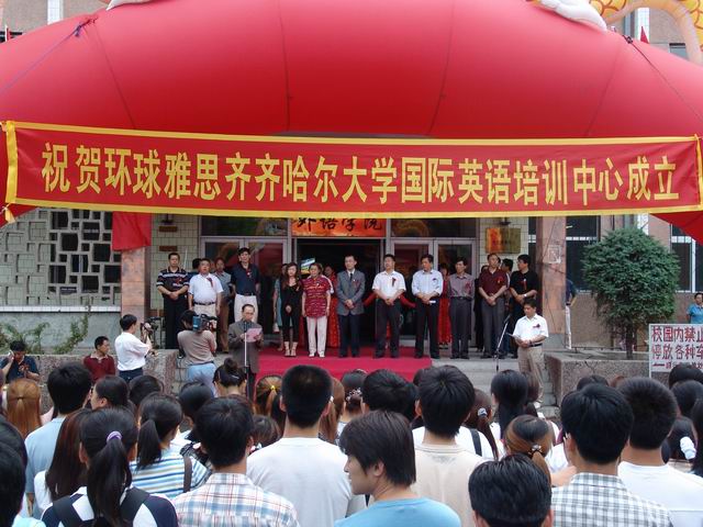 校長唱江華教授在成立大會暨揭牌儀式上發(fā)表了熱情洋溢的致詞,他首先代表學(xué)校對各界人士的蒞臨表示衷心地感謝和熱烈歡迎,對環(huán)球雅思國際英語培訓(xùn)中心落戶鶴城表示祝賀!他指出,在改革開放不斷深入,國際交流進(jìn)一步擴(kuò)大的今天,環(huán)球雅思國際英語培訓(xùn)中心落戶鶴城,將為我校學(xué)生及齊齊哈爾市有識之士提供了更為廣闊的學(xué)習(xí)英語的途徑。他預(yù)祝,環(huán)球雅思齊齊哈爾大學(xué)國際英語培訓(xùn)中心將辦得更有特色,更有成效,為齊齊哈爾市與海內(nèi)外的交流合作,促進(jìn)經(jīng)濟(jì)社會發(fā)展發(fā)揮重要的作用。他表示,我校將努力為環(huán)球雅思國際英語培訓(xùn)中心提供寬松的環(huán)境和空間。他相信,經(jīng)過各方的共同努力,雅思齊齊哈爾大學(xué)國際英語培訓(xùn)中心一定會辦成高水平的國際英語培訓(xùn)中心,最后,他再一次向為本次活動的成功舉辦給予大力支持并付出辛勤努力的各有關(guān)單位表示衷心感謝并鄭重宣布:環(huán)球雅思國際英語培訓(xùn)中心正式成立!