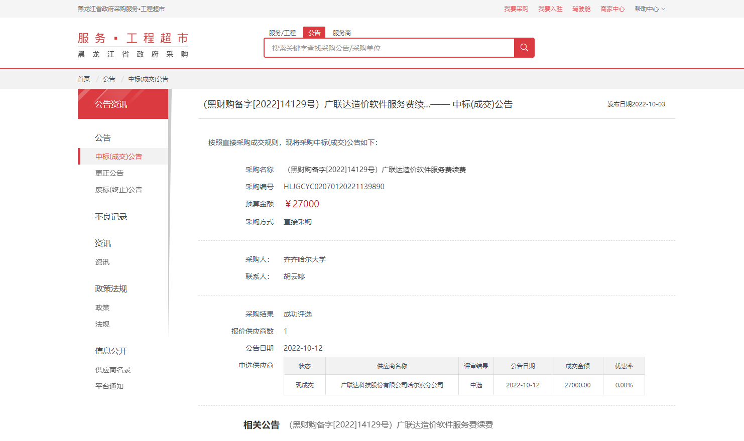 采購名稱(黑財購備字[2022]14129號)廣聯(lián)達造價軟件服務(wù)費續(xù)費