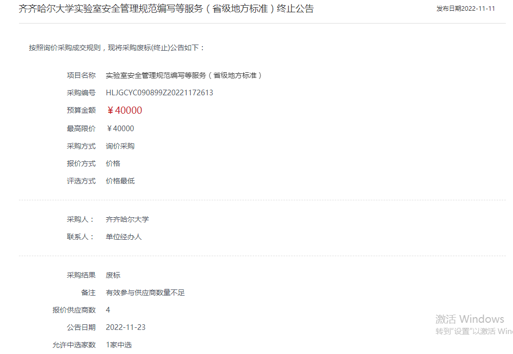 上一條:齊齊哈爾大學實驗室安全管理規范編寫等服務(省級地方標準)(第2次)詢價采購公告(轉自黑龍江省政府采購網)