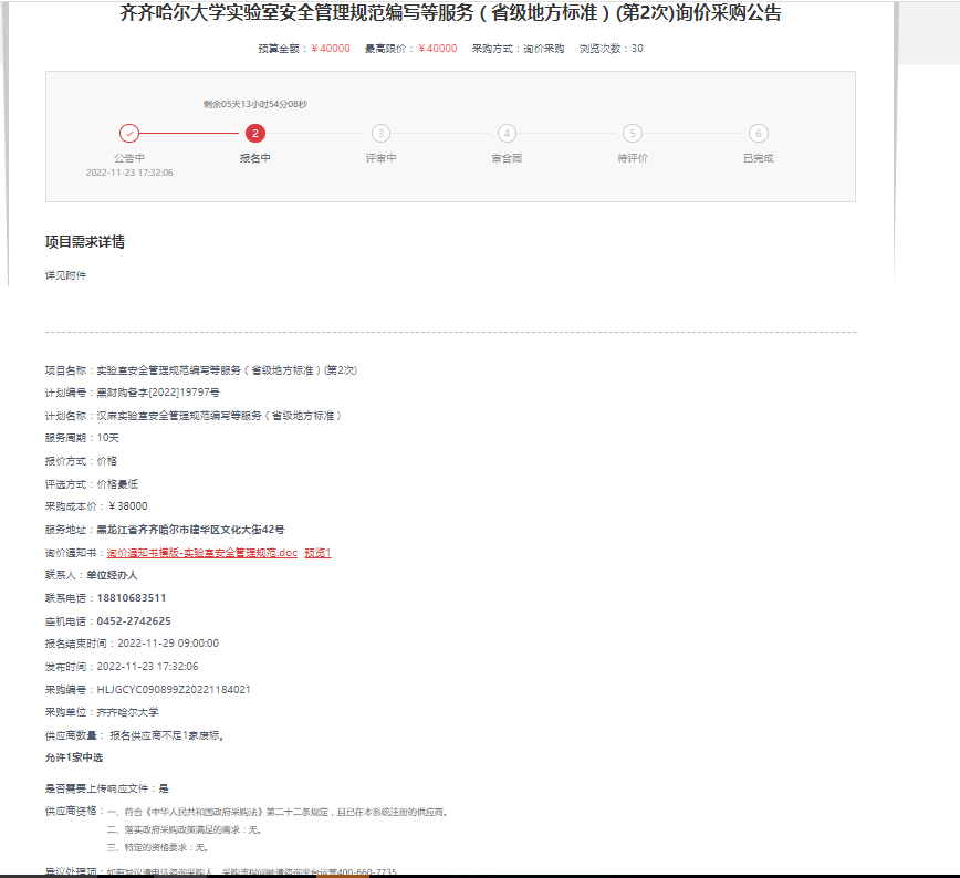 上一條:齊齊哈爾大學檢驗檢測實驗室廢棄物處置規范編寫等服務 (省級地方標準)(第2次)詢價采購公告(轉自黑龍江省政府采購網)