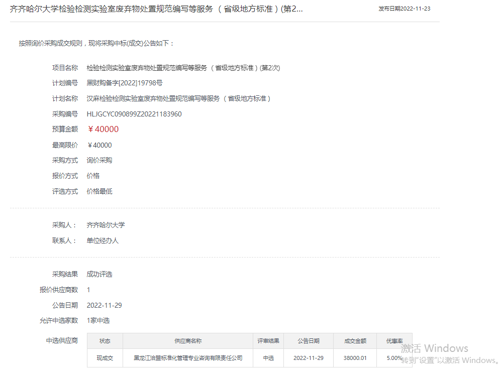 上一條:齊齊哈爾大學實驗室安全管理規范編寫等服務(省級地方標準)(第2次)結果公告(轉自黑龍江省政府采購網)
