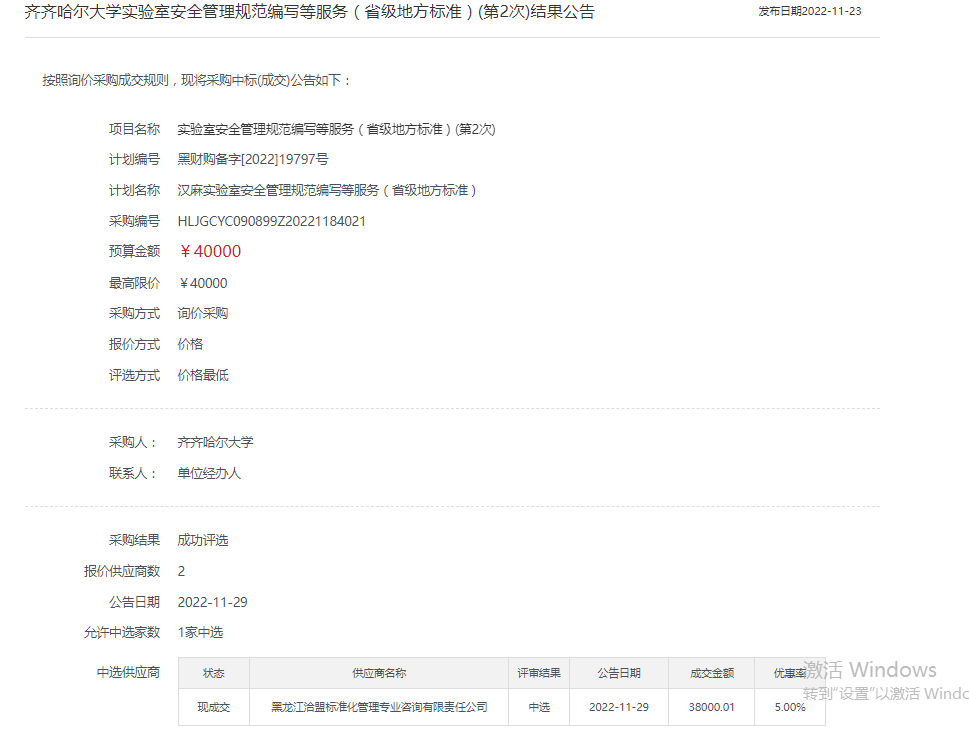 下一條:齊齊哈爾大學檢驗檢測實驗室廢棄物處置規范編寫等服務(省級地方標準)(第2次)結果公告(轉自黑龍江省政府采購網)