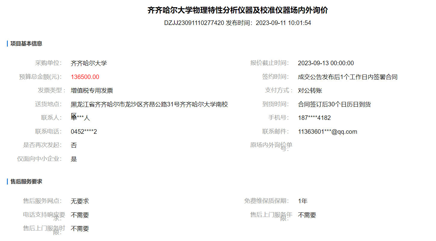 上一條:齊齊哈爾大學物理特性分析儀器及校準儀器場內外詢價(DZJJ23091110257420)(轉自黑龍江省政府采購網)