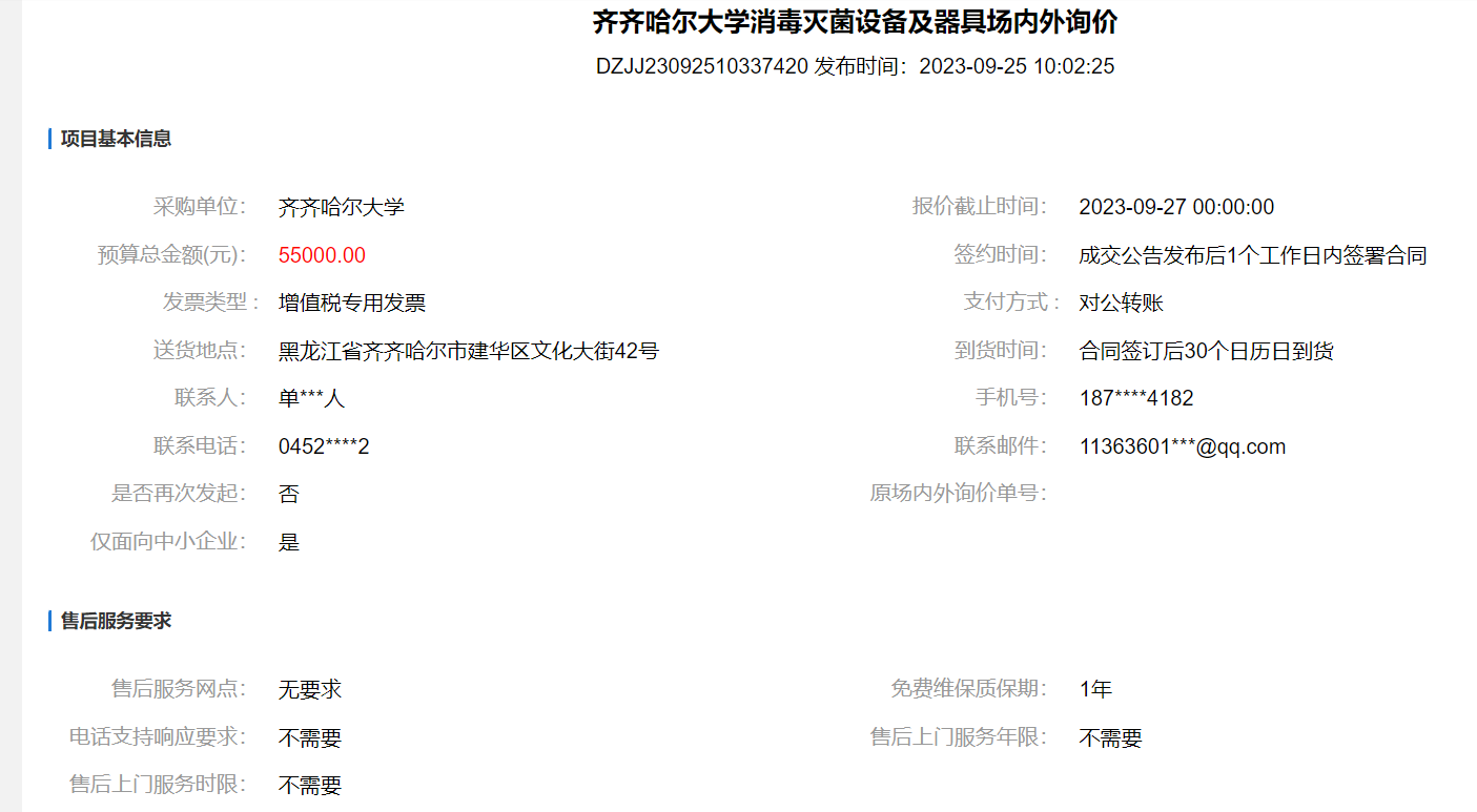 上一條:齊齊哈爾大學消毒滅菌設備及器具場內外詢價(廢標公告)(轉自黑龍江省政府采購網)