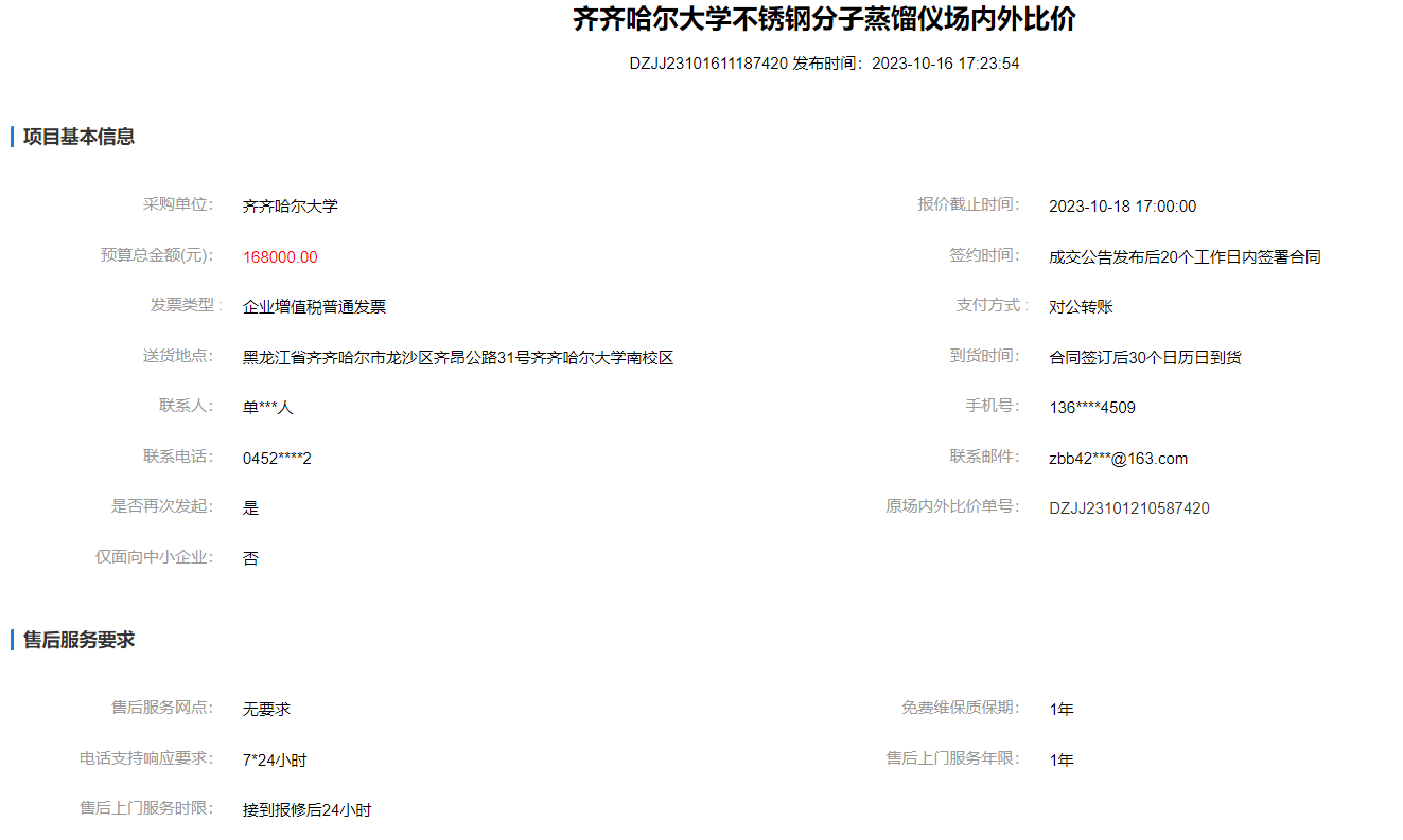 上一條:齊齊哈爾大學小鼠IVC籠具場內外詢價(二次廢標)(轉自黑龍江省政府采購網)