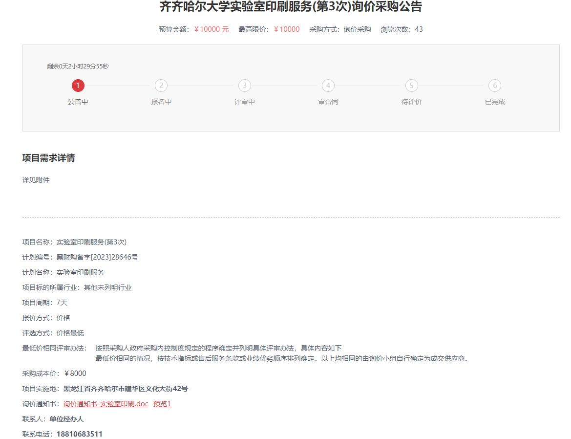 下一條:齊齊哈爾大學實驗室印刷服務(第2次)詢價采購公告(轉自黑龍江省政府采購網)