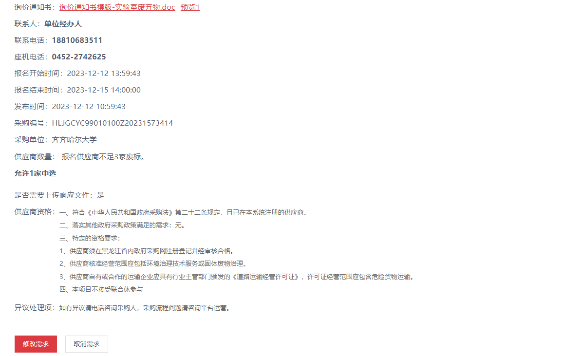 下一條:齊齊哈爾大學齊齊哈爾大學化工校區實訓樓三四樓裝修及平房設備基礎采購項目直接采購公告(轉自黑龍江省政府采購網)