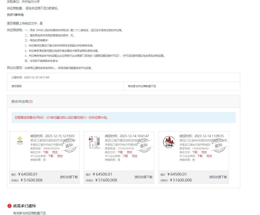 上一條:齊齊哈爾大學實驗室危險廢物打包收集服務項目(第2次)詢價采購公告(轉自黑龍江省政府采購網)