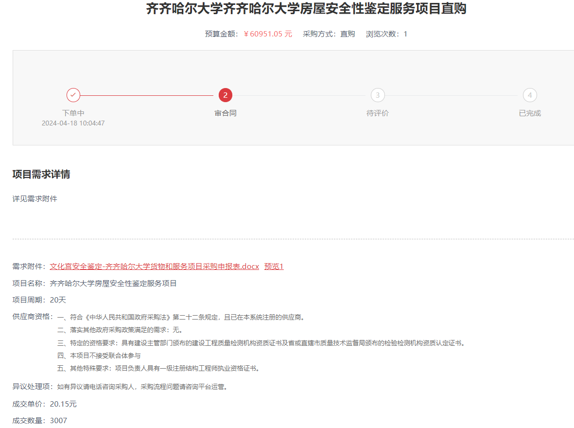齊齊哈爾大學房屋安全性鑒定服務項目直購(轉自黑龍江省政府采購網)
