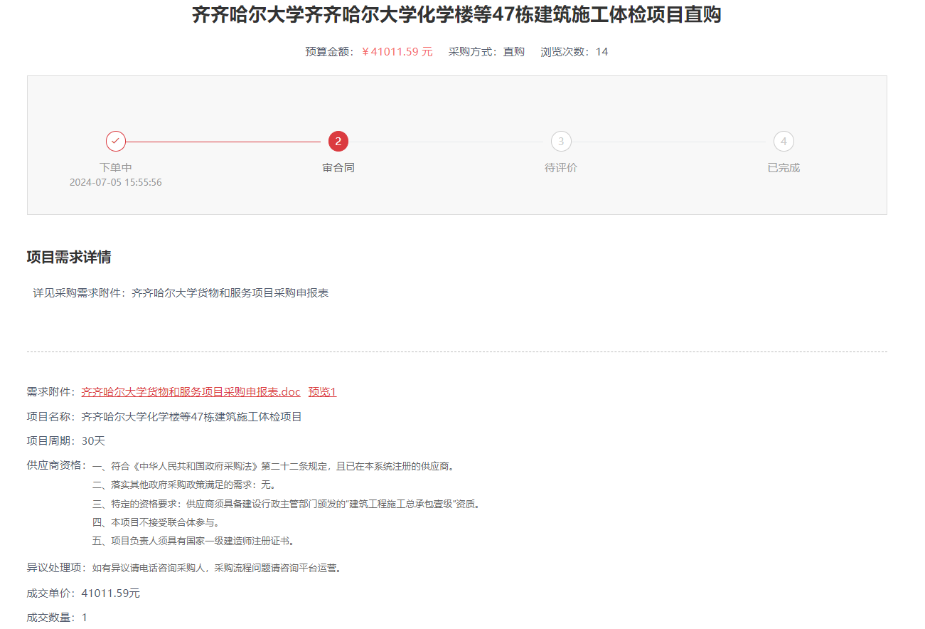 下一條:齊齊哈爾大學化學樓等47棟建筑施工體檢項目直購(轉自黑龍江省政府采購網)