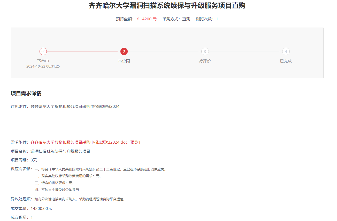 上一條:齊齊哈爾大學(xué)銥迅WEB應(yīng)用防護(hù)系統(tǒng)續(xù)保與升級(jí)服務(wù)項(xiàng)目直購(gòu)(轉(zhuǎn)自黑龍江省政府采購(gòu)網(wǎng))