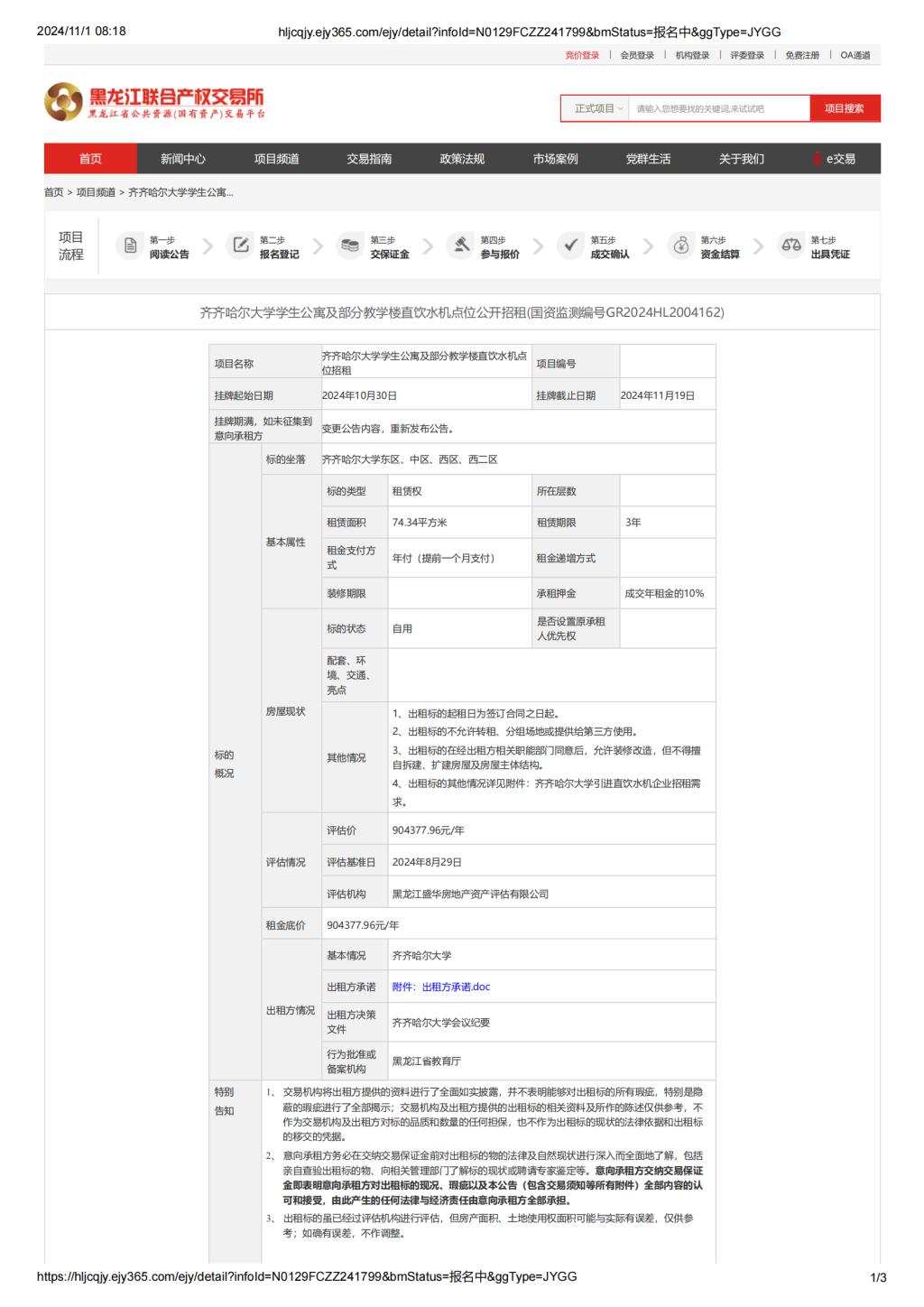 齊齊哈爾大學學生公寓及部分教學樓直飲水機點位公開招租(國資監(jiān)測編號GR2024HL2004162)(轉自黑龍江聯合產權交易所)