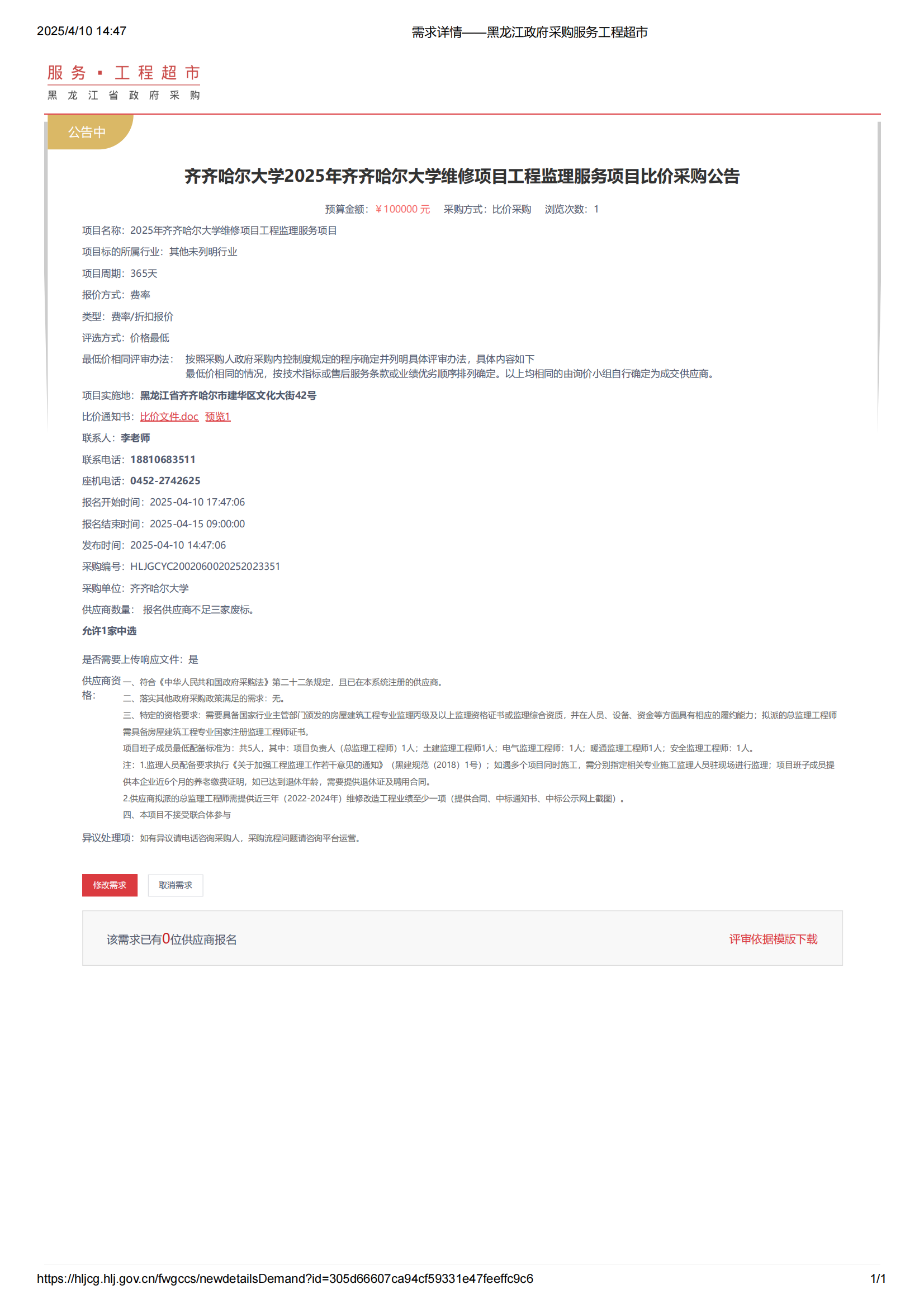 上一條:齊齊哈爾大學通信與電子工程學院實驗雜品采購-詢價(二次)公告(轉自中國招標投標公共服務平臺)