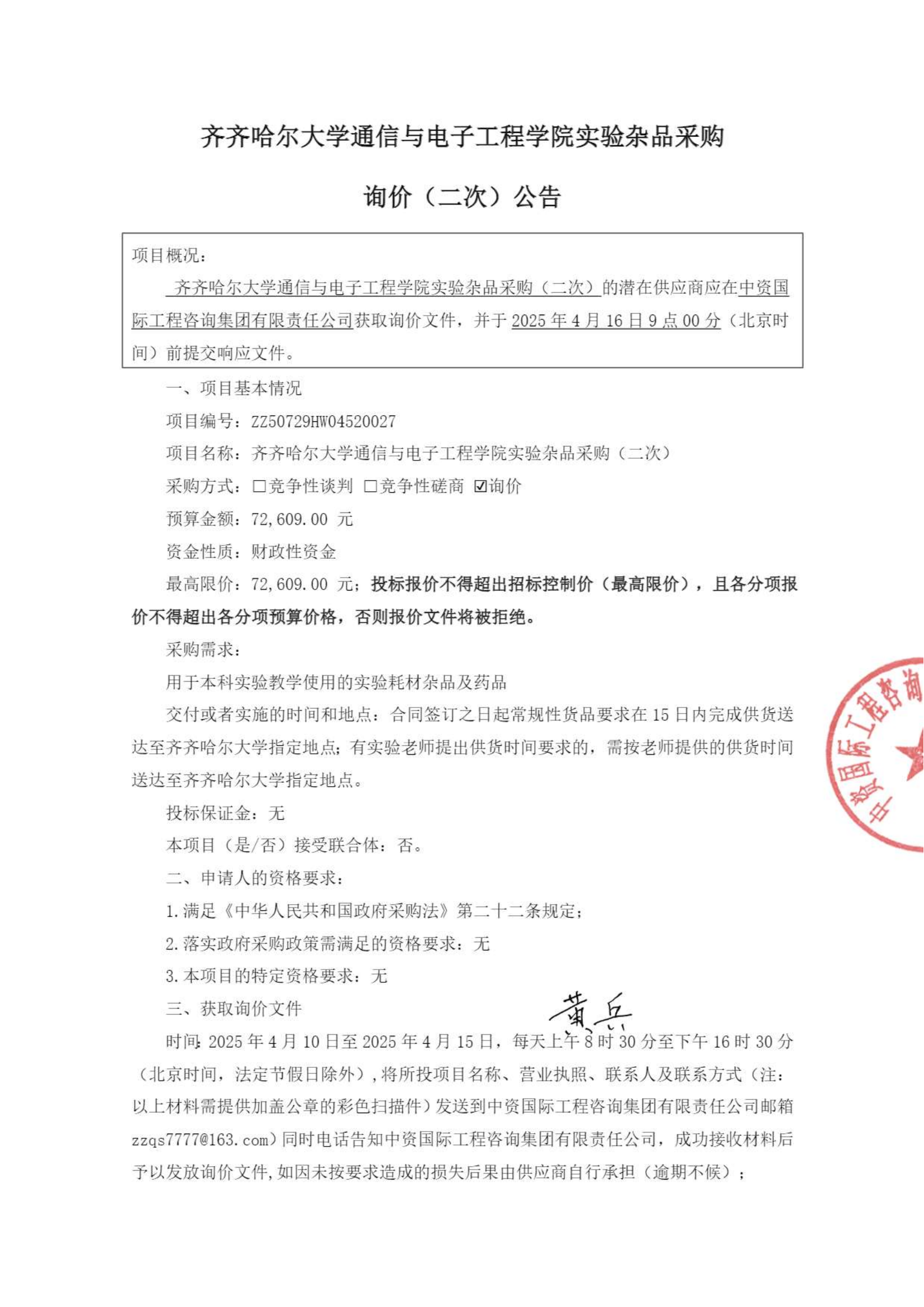 下一條:齊齊哈爾大學2025年齊齊哈爾大學維修項目工程監理服務項目比價采購公告(轉自黑龍江省政府采購網)