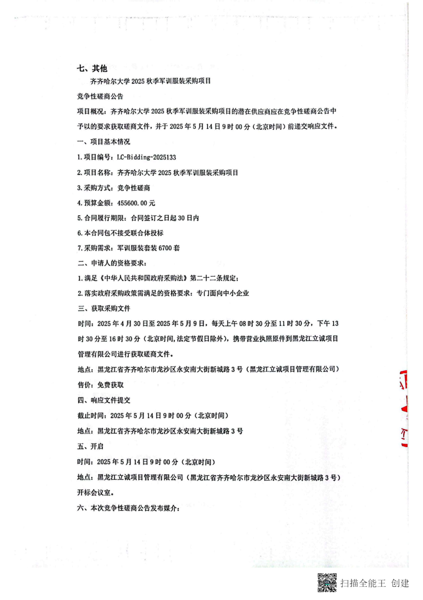 下一條:齊齊哈爾大學(xué)學(xué)生公寓物業(yè)服務(wù)采購(gòu)項(xiàng)目結(jié)果公告(轉(zhuǎn)自黑龍江省政府采購(gòu)網(wǎng))