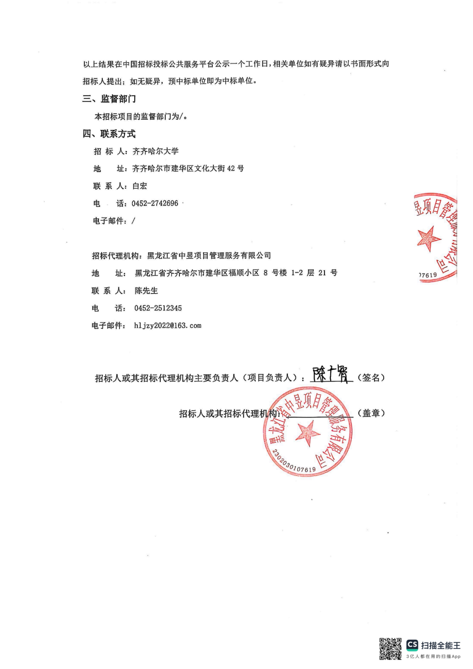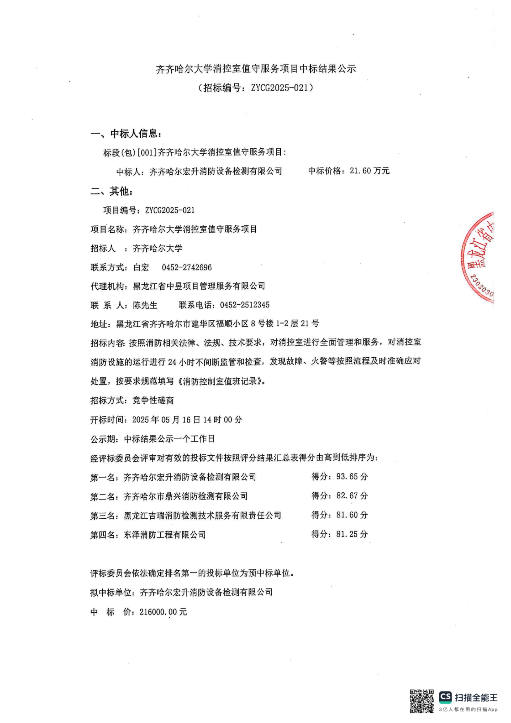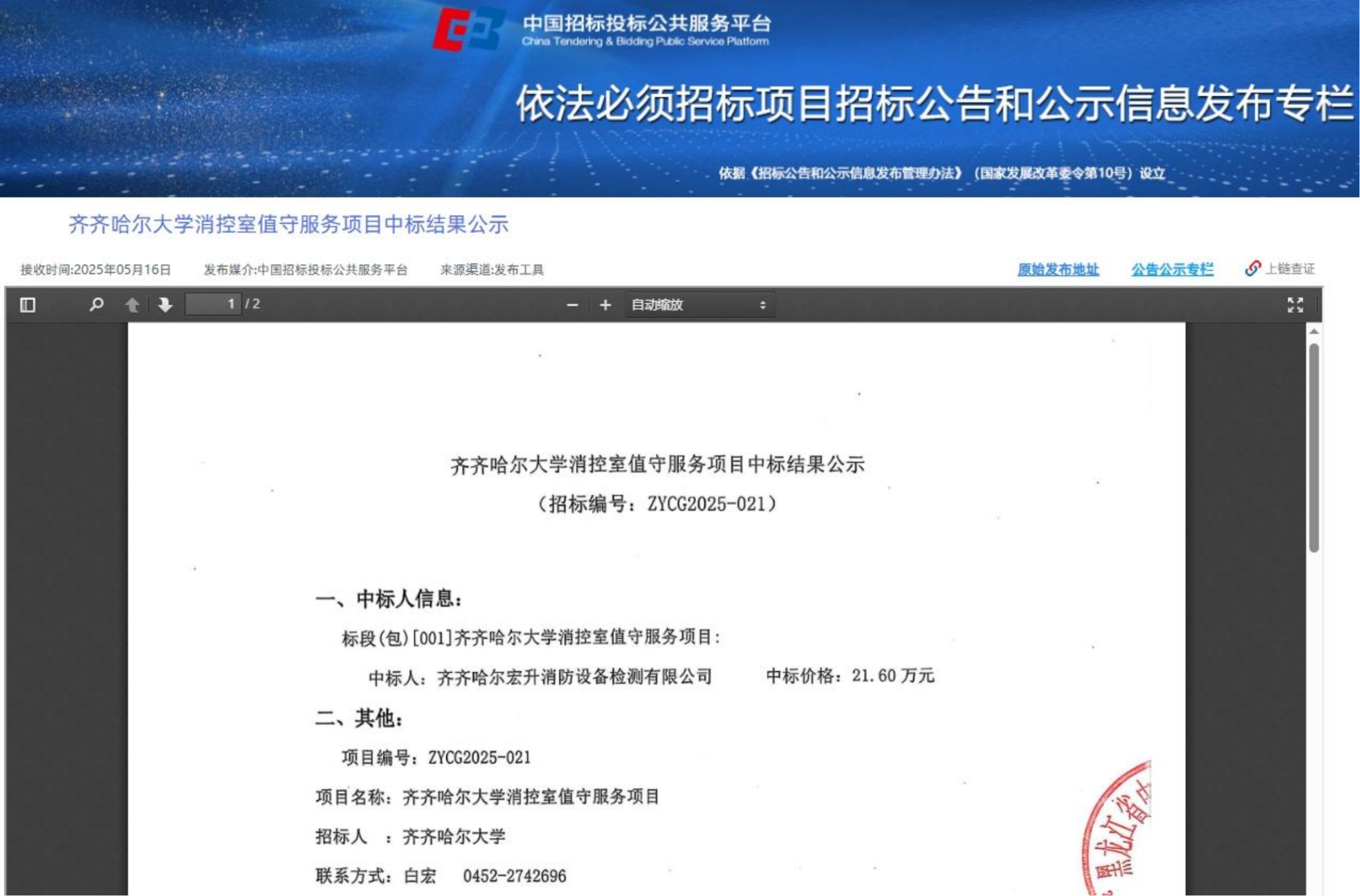 齊齊哈爾大學(xué)消控室值守服務(wù)項目中標結(jié)果公示(轉(zhuǎn)自中國招標投標公共服務(wù)平臺)