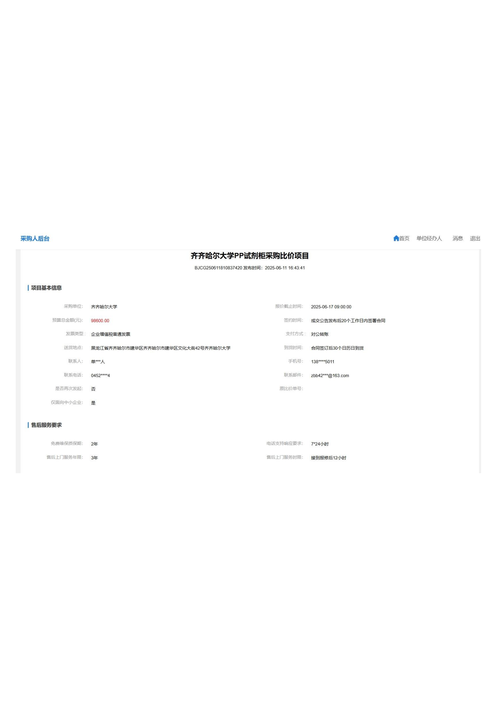 齊齊哈爾大學PP試劑柜采購比價項目(轉自黑龍江省政府采購網)