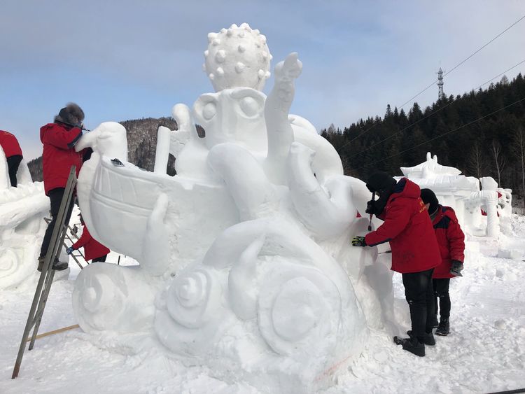 (主題雪雕一等獎作品《盛世吉祥》)