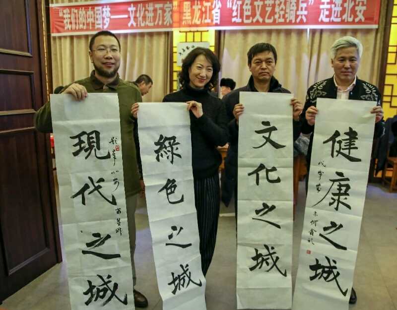 “紅色文藝輕騎兵”走進北安小分隊由來自省文旅廳、省文聯(lián)、省作家協(xié)會、省歌舞劇院、省畫院、省曲藝團、省雜技團、省京劇院、省龍江劇藝術(shù)中心、省評劇藝術(shù)中心、哈爾濱師范大學等多個單位和機構(gòu)的我省著名藝術(shù)家以及省報、省臺、東北網(wǎng)記者共36人組成。我校美術(shù)系主任、碩士研究生導師何鑫教授作為省、市文藝志愿者代表,赴黑河市參加了本次“紅色文藝輕騎兵”進北安小分隊的公益活動。