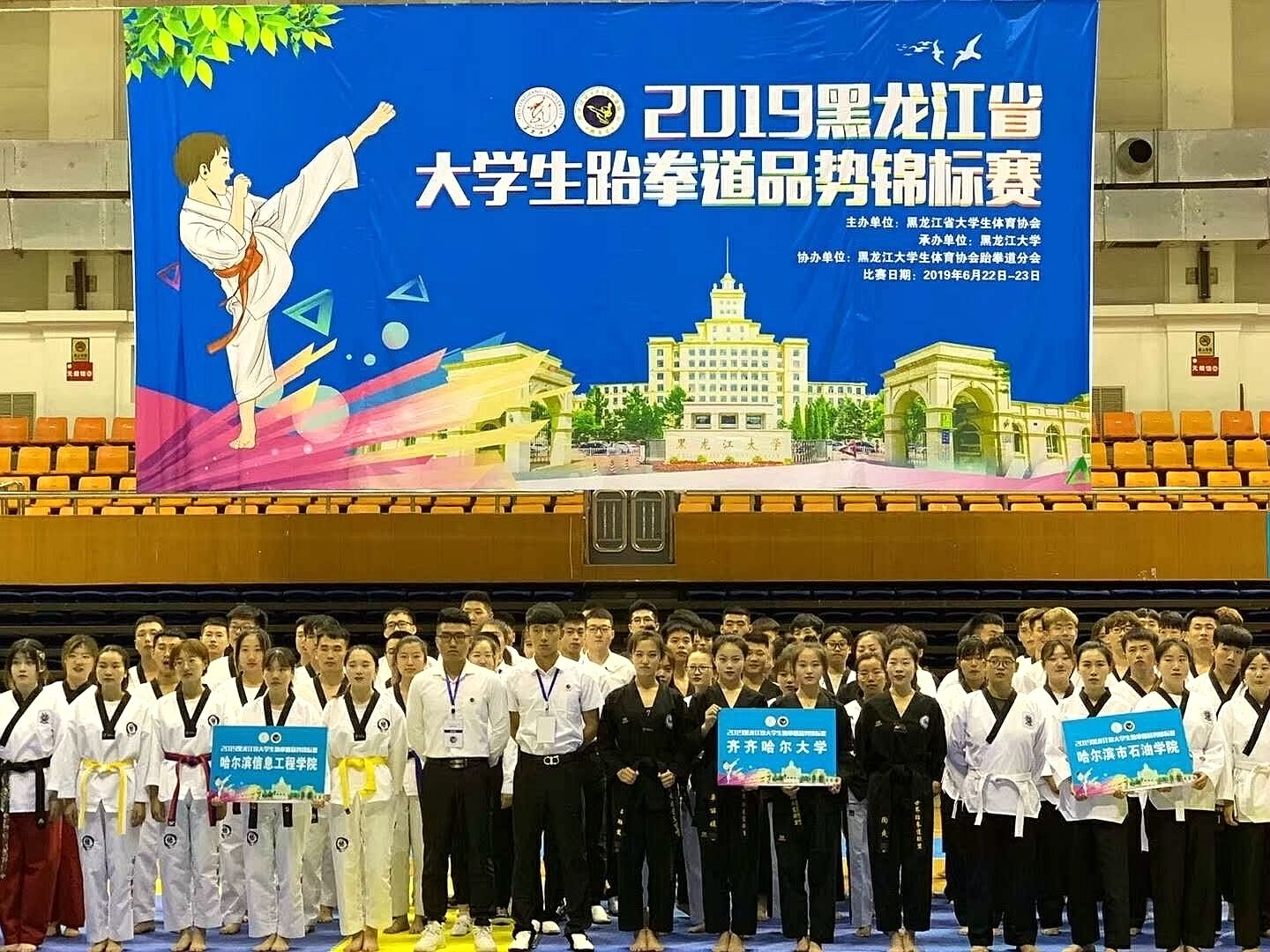 6月23日,為期兩天的2019黑龍江省大學生跆拳道錦標賽在黑龍江大學體育館落下帷幕,我校選派了28名學生參加比賽。經過2天共計410場激烈角逐,我校參賽選手共斬獲20枚金牌、18枚銀牌、7枚銅牌并獲得跆拳舞金獎,以總分276.5分的好成績勇奪此次比賽團體冠軍。