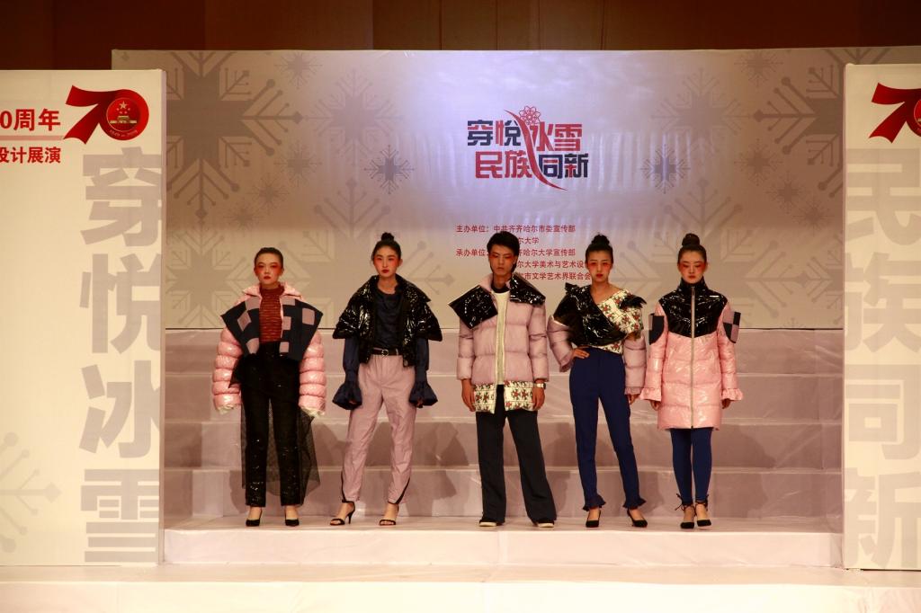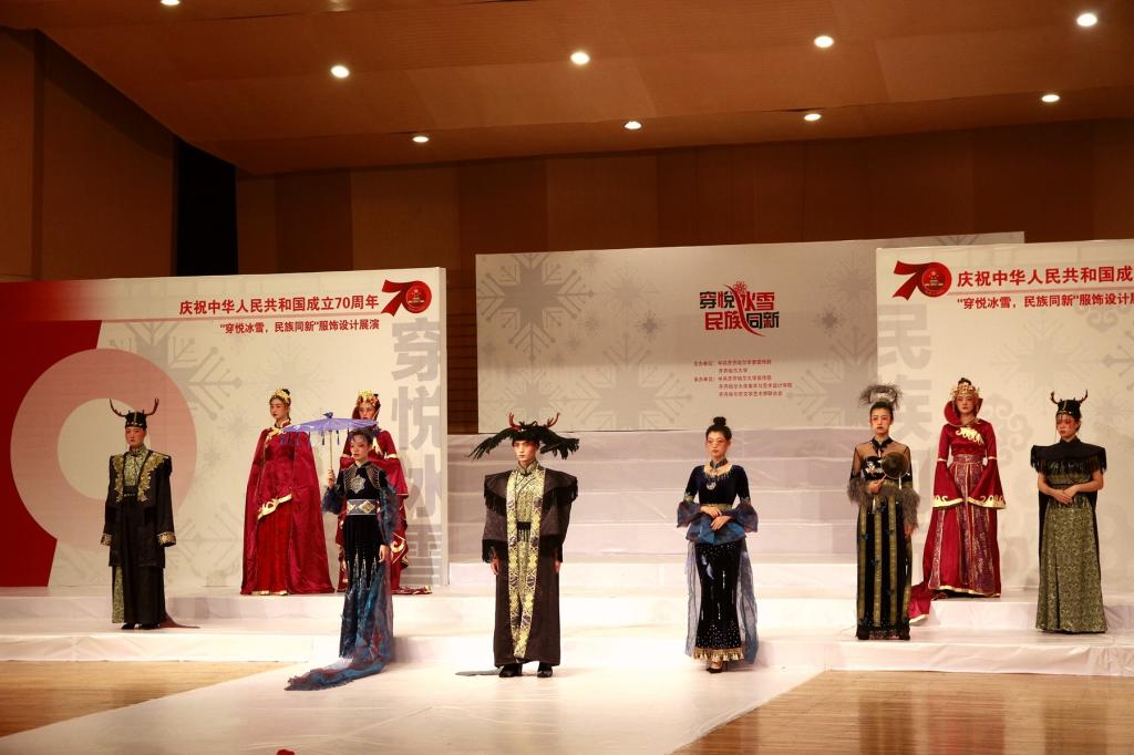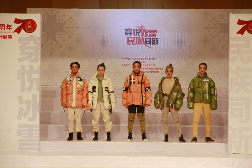 本次服裝設計展演以齊齊哈爾市委與我?!侗┓椢幕芯俊讽椖垦芯繉嵺`教學為主體,以“穿悅冰雪·民族同新”為主題,著眼于北方冰雪服飾的研究和設計,切實增強了設計作品的實用性和市場性,力圖展現新中國成立七十周年以來服飾設計的新風貌。