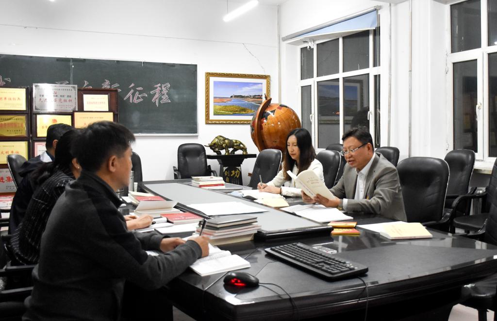 9月17日晚,校宣傳部領導班子在機關樓統戰活動室進行了“不忘初心、牢記使命”主題教育專題學習研討,圍繞習近平總書記關于“不忘初心、牢記使命”主題教育的重要論述進行了集中學習。黨委常委、宣傳統戰部長王曉梅強調,我們要深刻認識開展主題教育的重大意義,認真領會開展主題教育的總體要求和根本任務,牢牢把握黨中央、省委、校黨委對主題教育的具體要求;我們要真正把思想和行動統一到中央和省委決策部署上來,切實解決宣傳思想文化工作中存在的突出問題和短板弱項,履行好舉旗幟、聚民心、育新人、興文化、展形象的使命任務,讓全校宣傳思想文教工作水平有所提高,邁上新臺階。