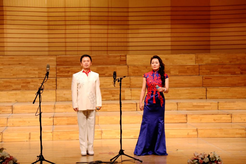 最后,由我校音樂與舞蹈學院朱艷彬老師和黑河學院程一民老師為大家帶來男女聲二重唱山西民歌《想親親》,曲調優美,生動活潑,特色鮮明,藝術獨特,把演出氛圍推向了高潮,全場響起熱烈的掌聲。