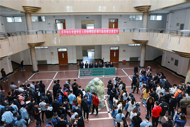 4月24日下午,學生工作部(學生處)邀請齊齊哈爾市建華區人民檢察院的檢察官,在西區主樓陽光大廳開展“送法進校園”活動,全方位進行民事行政法治宣傳。廣大師生對“校園貸”“套路貸”等行為涉及的民事法律問題有了進一步的了解,增強了法治觀念和依法維護合法權益的自覺性。