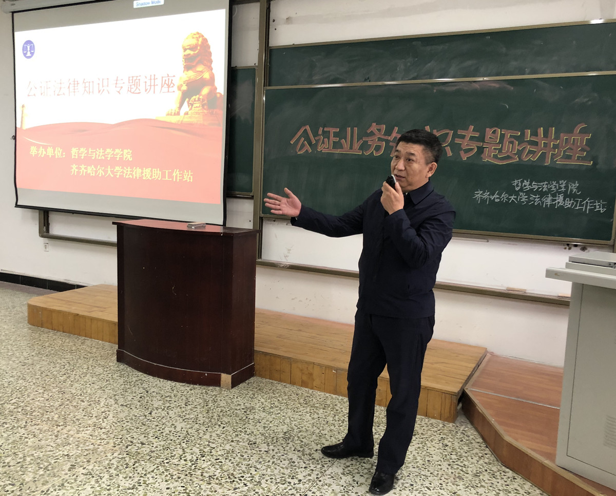 10月28日,學院邀請齊齊哈爾市公證處主任萬軍海在25教J202室舉辦了“公證法律知識”專題講座。通過萬海軍主任的精彩講解進一步加深了同學們對公證法律知識的認識。